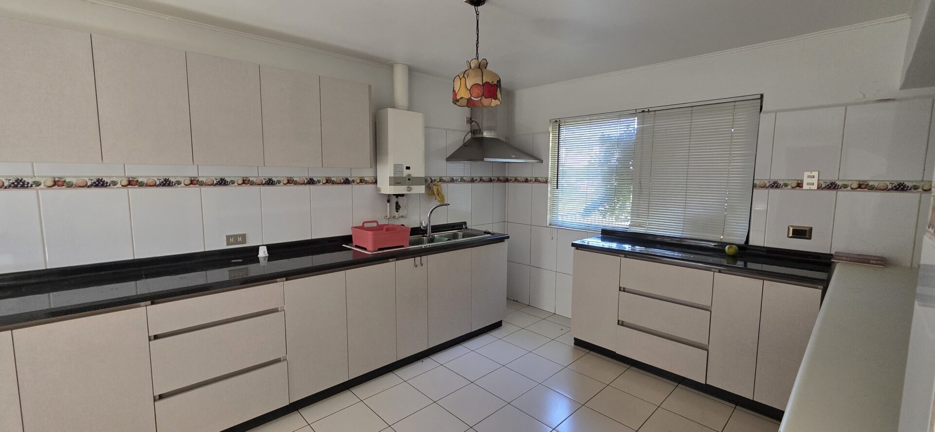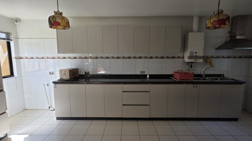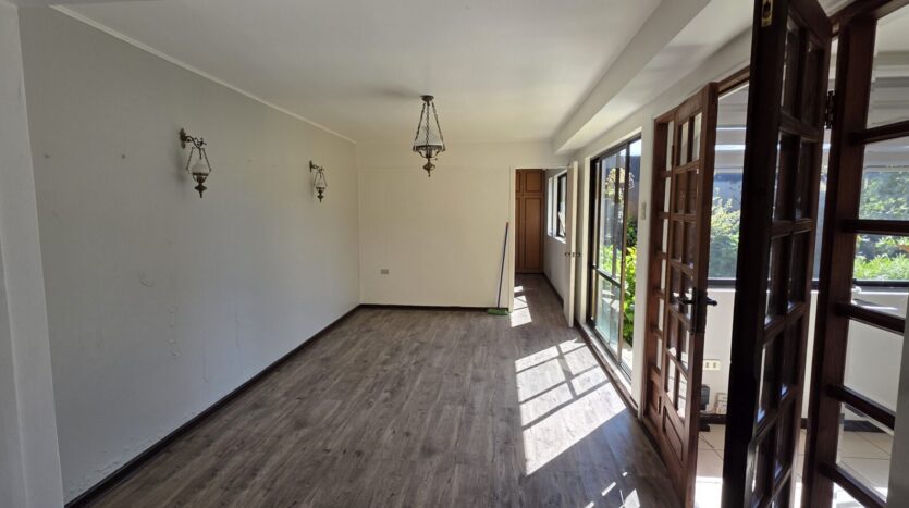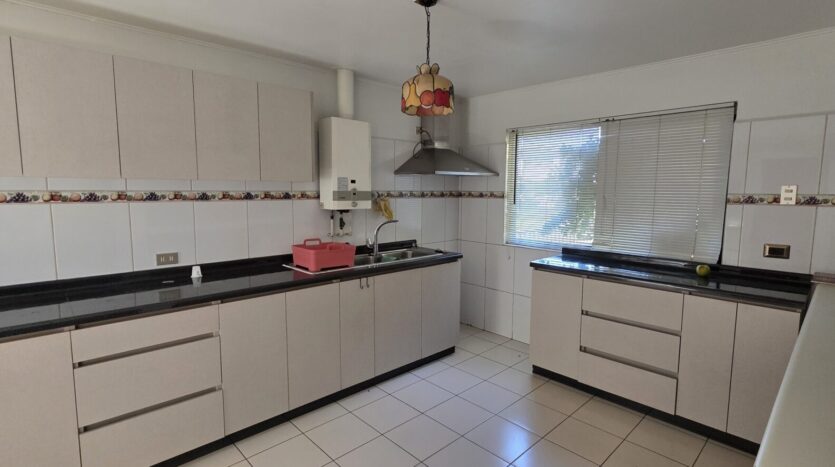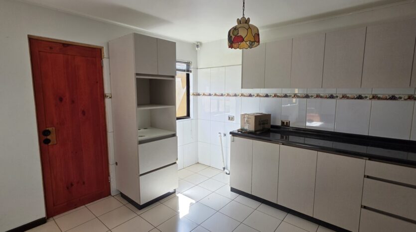 La casa cuenta con 4 dormitorios; 2 baños; living; comedor, cocina cerrada, amoblada y equipada; logia; patio trasero, quincho, antejardín; estacionamiento techado para un vehículo y estacionamiento abierto para un vehículo.