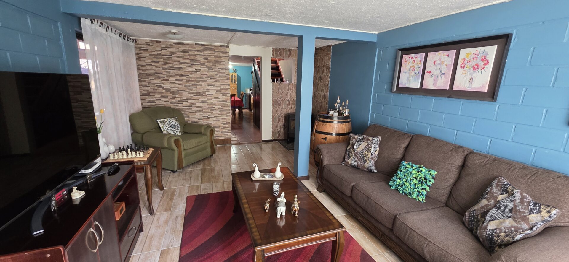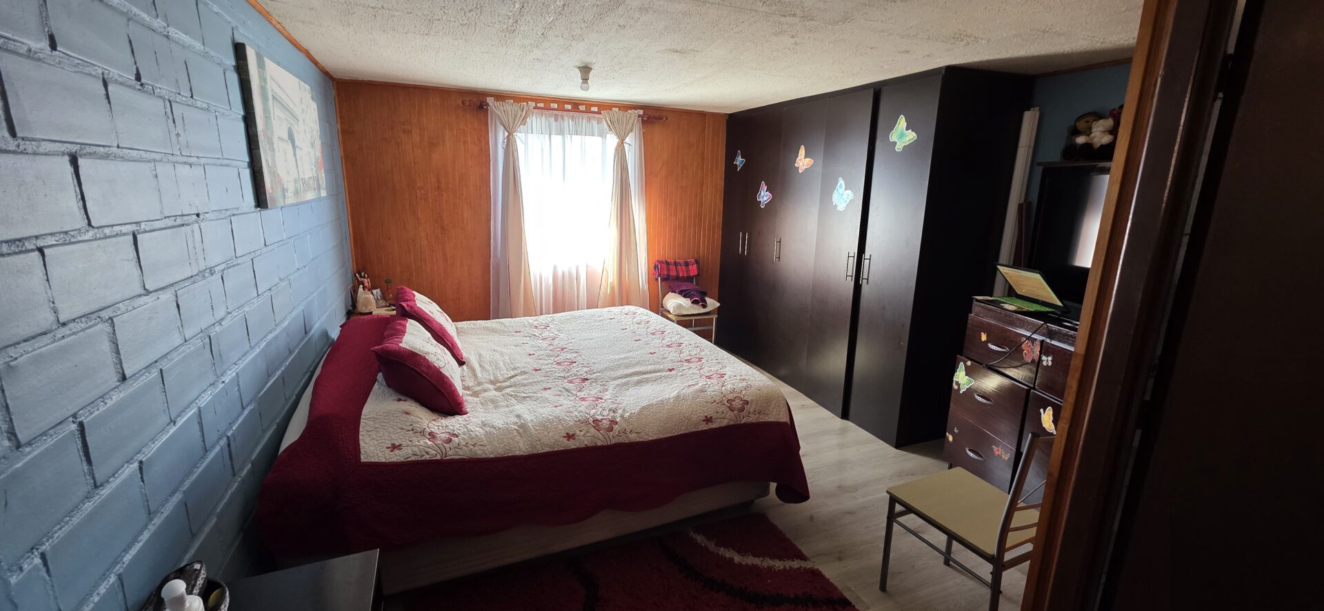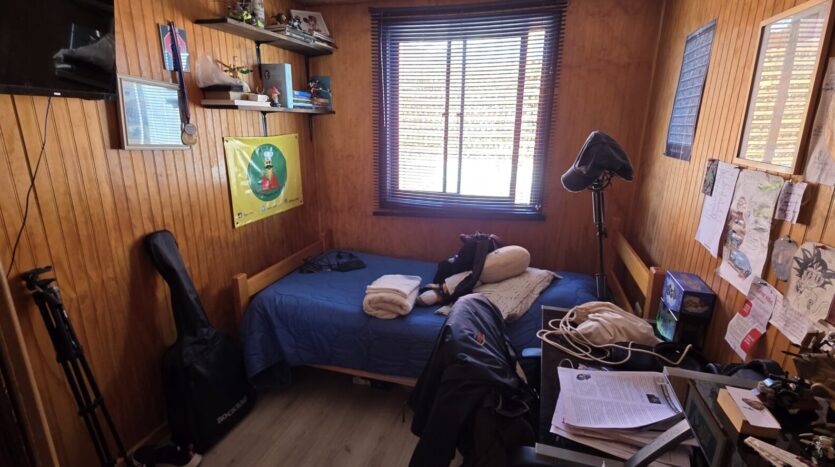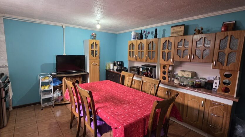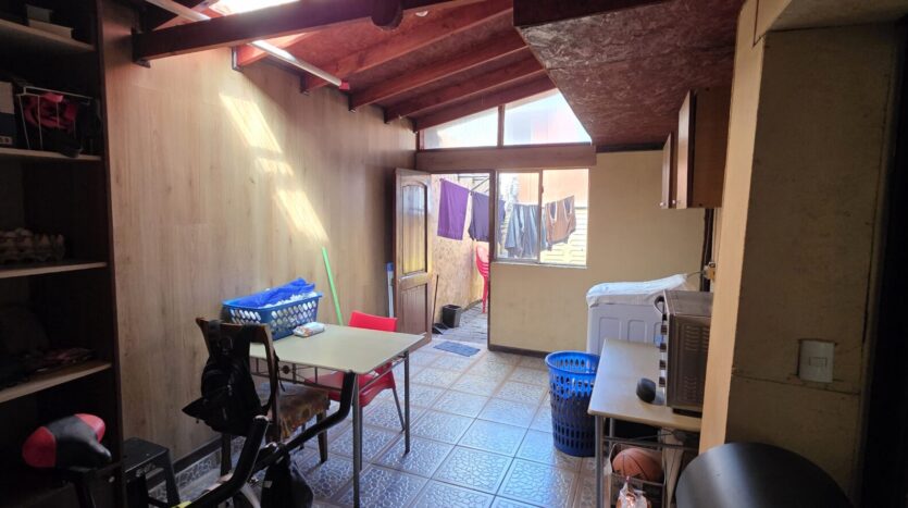 La casa cuenta con 4 dormitorios, 2 baños, living comedor, amplia cocina cerrada, pequeño antejardín, lavandería y bodega, patio trasero y estacionamiento para un vehículo.