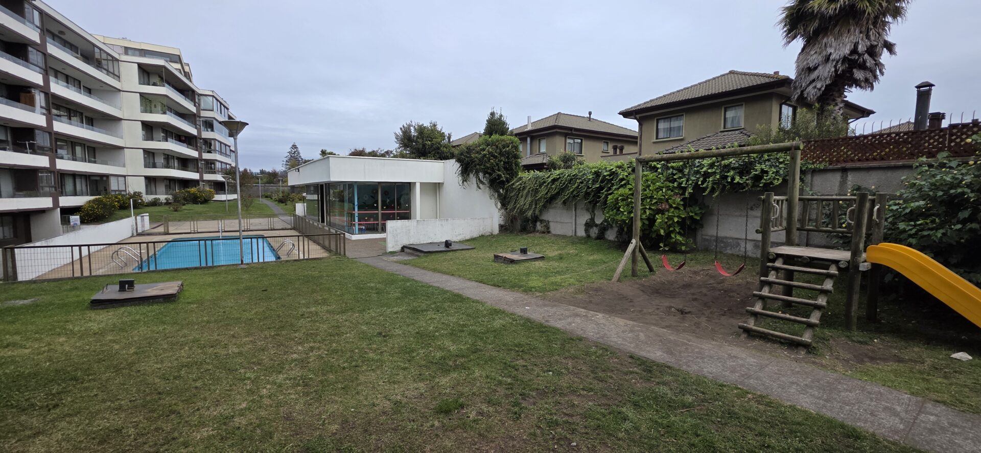 El edificio cuenta con ascensor, amplias áreas verdes, piscina, gimnasio, lavandería, sala de usos múltiples, quincho, sala de estudio, juegos infantiles, portón automático, conserjería 24 hrs, control de accesos.