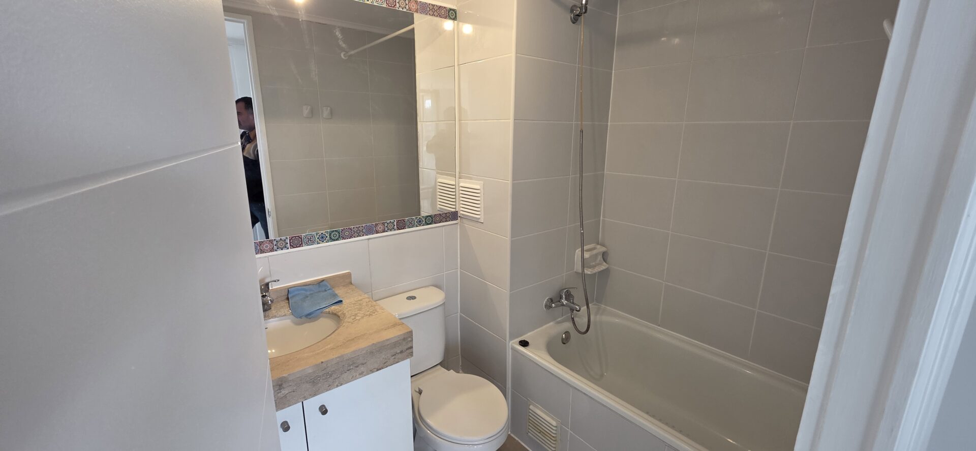 El entorno del edificio ofrece áreas verdes, ciclovías, peluquerías, locomoción colectiva, supermercado y un variado comercio local.