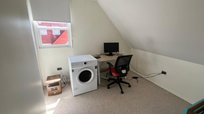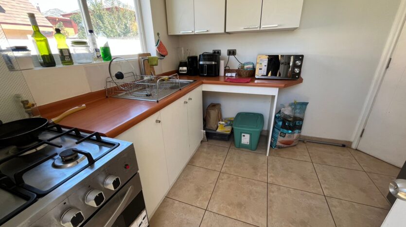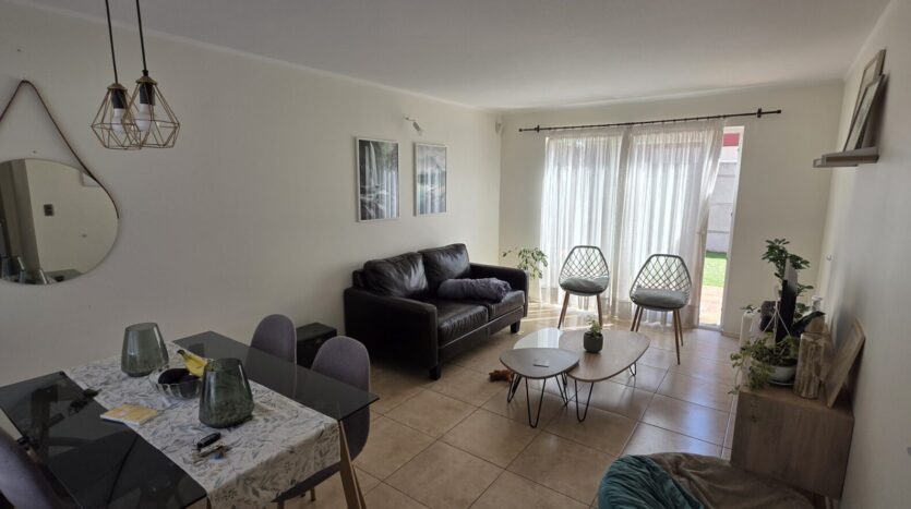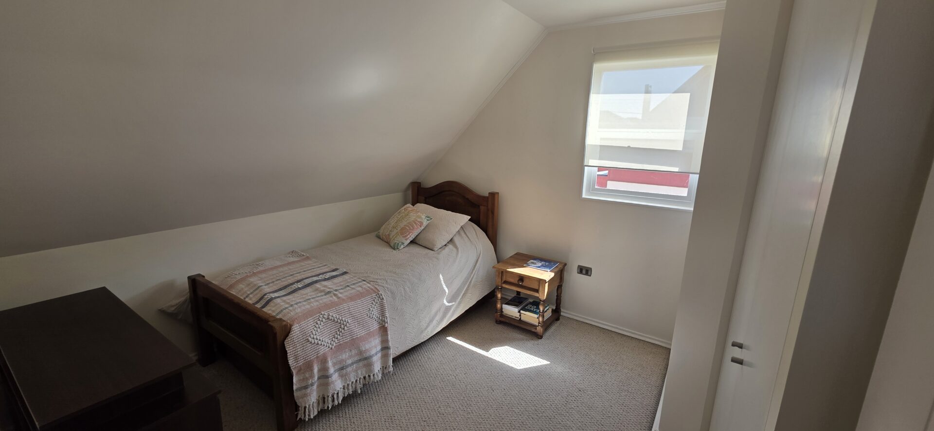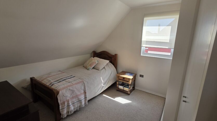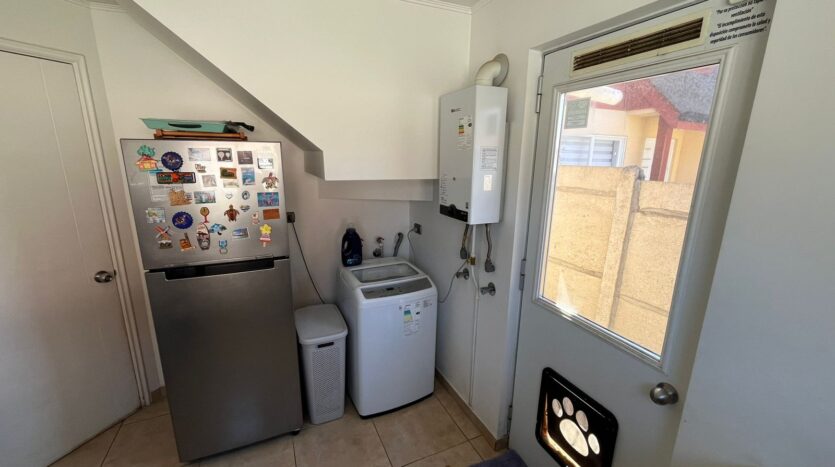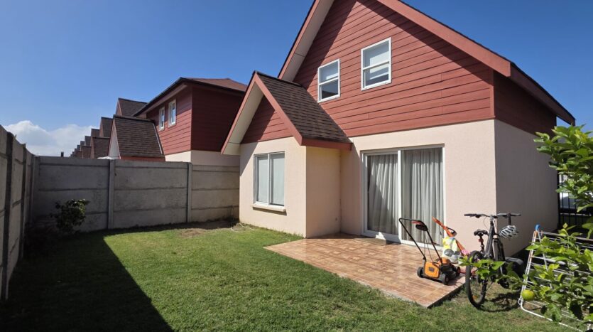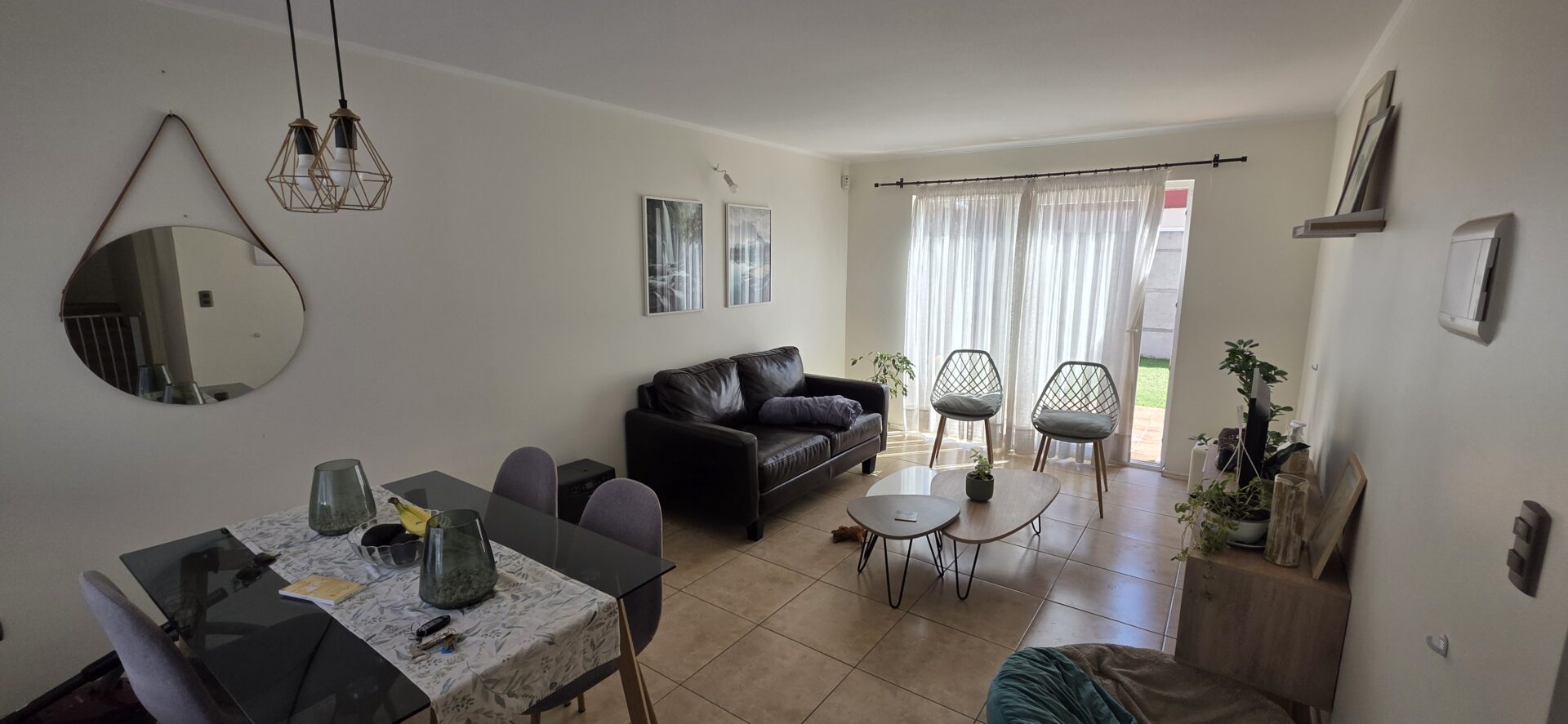 La casa cuenta con 3 dormitorios, 2 baños (uno en suite), living comedor, sala de estar, cocina cerrada y amoblada, patio trasero, terraza de 9 m2, antejardín y estacionamiento para dos vehículos.