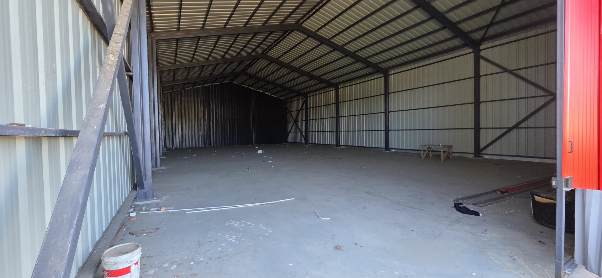 Otras características de la propiedad son: frente de 22 mts app, fondo de 75 mts app, cada nave tiene un radier de hormigón de calidad G25 90 20 12, cada nave tiene 15 mts de ancho por 30 mts de largo y 6 mts de alto en su punto máximo, estacionamiento para 10 vehículos, amplio portón de acceso, puerta de acceso peatonal.