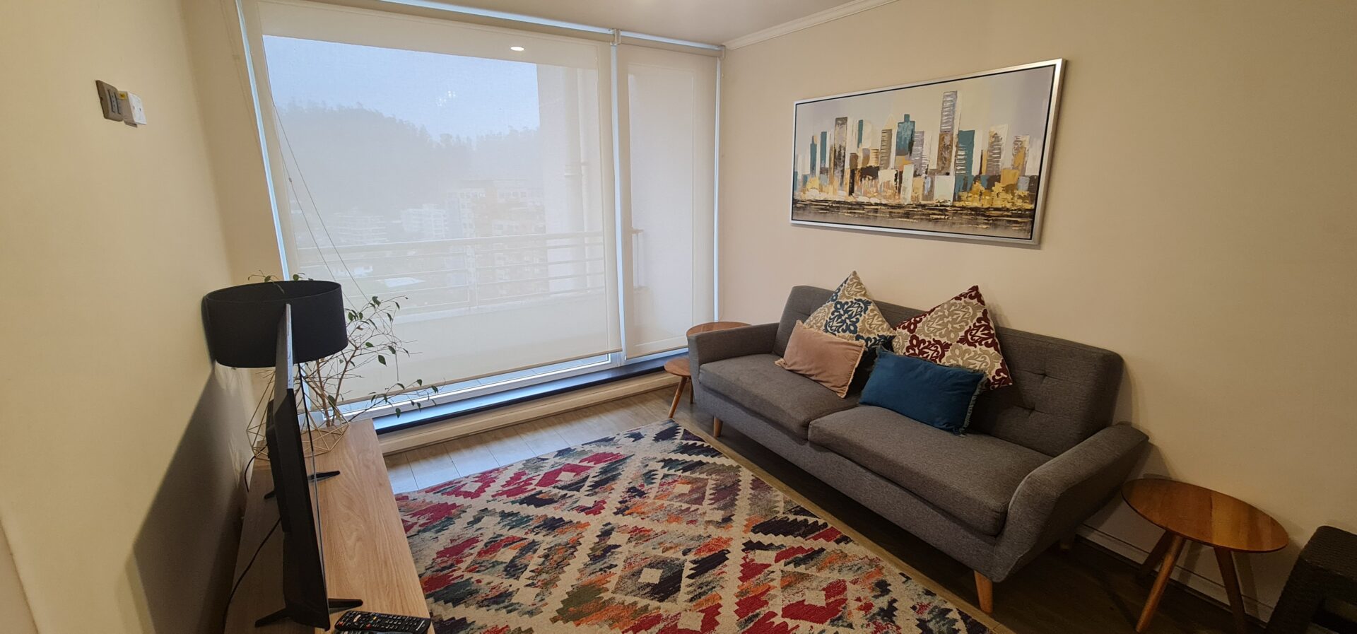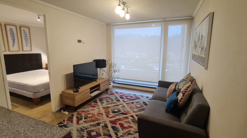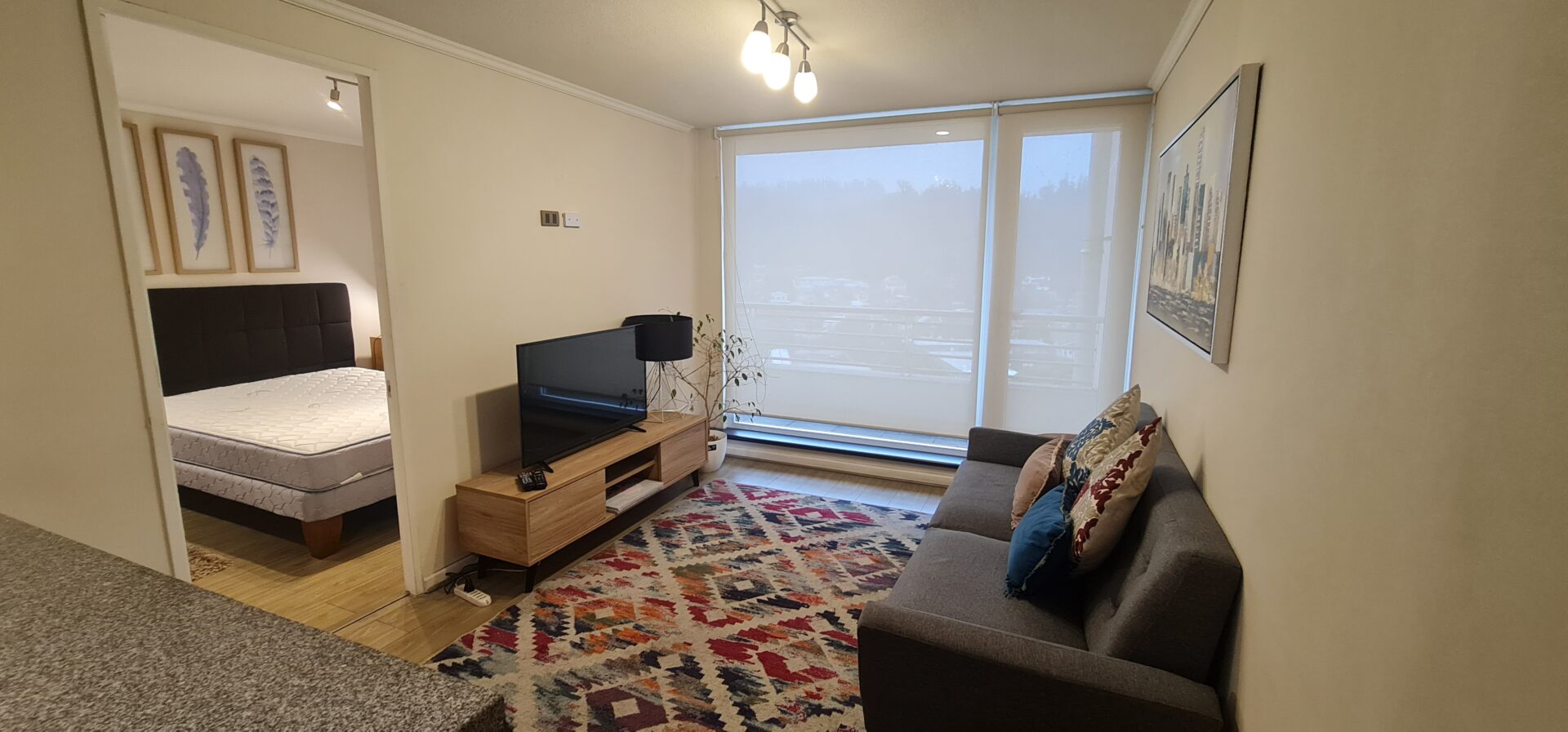 Moderno departamento amoblado en Concepción. De 40 m2 más terraza de 5 m2. Ubicado a pasos del centro de Concepción; cercano a Universidad de Concepción; Universidad del Desarrollo; supermercados; juzgado; Hospital Regional; Traumatológico; restaurantes y comercio en general.